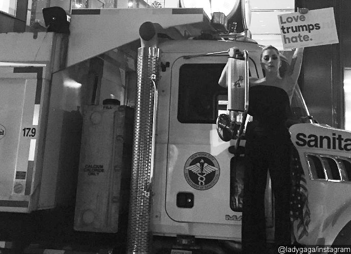 Lady GaGa Protests Outside Trump Tower After Donald Trump's Unexpected Win The 'Perfect Illusion' singer, who has been a vocal supporter of Hillary Clinton, holds a sign that reads, 'Love trumps hate,' following Clinton's shocking defeat. Baca Berita Asal