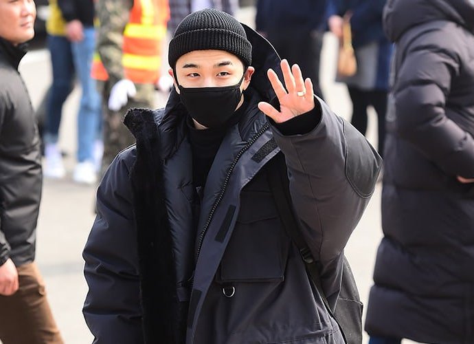 The 'Eyes, Nose, Lips' hitmaker said goodbye to YG Entertainment staff and greeted his fans who were waiting for him at the Kangwon-do Chulwon 6th Infantry Division's training center.